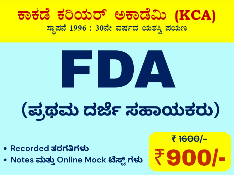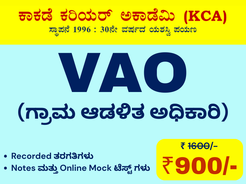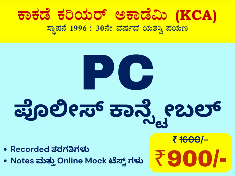 ಕರ್ನಾಟಕದಲ್ಲಿ ಅತ್ಯಂತ ಹಳೆಯ ಮತ್ತು ಅನುಭವಿ ಸ್ಪರ್ಧಾತ್ಮಕ ಪರೀಕ್ಷಾ ತರಬೇತಿ ಕೇಂದ್ರಗಳಲ್ಲಿ ಕಾಕಡೆ ಕರಿಯರ ಅಕಾಡೆಮಿ ಒಂದಾಗಿದ್ದು ಕಾಕಡೆ ಕರಿಯರ್ ಅಕಾಡೆಮಿಯಲ್ಲಿ ಸ್ಪರ್ಧಾತ್ಮಕ ಪರೀಕ್ಷೆಗಳಿಗೆ Online ಮತ್ತು Classroom ತರಬೇತಿಯು ದೊರೆಯುತ್ತದೆ