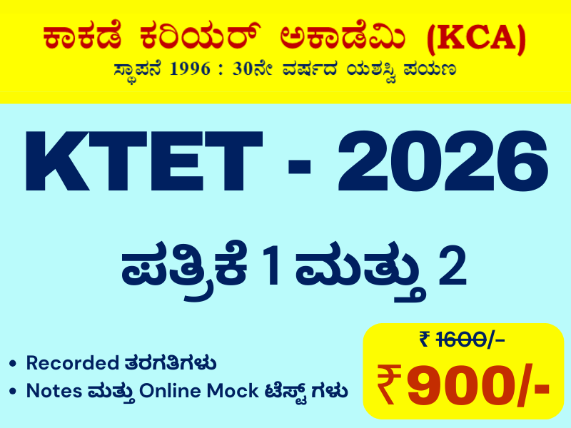 ಕಡ್ಡಾಯ ಕನ್ನಡ, ಪತ್ರಿಕೆ-1 ಮತ್ತು ಪತ್ರಿಕೆ-2 ಸೇರಿ ಒಟ್ಟು ಶುಲ್ಕ ರೂ. 700=00 ಮಾತ್ರ. ಕಡಿಮೆ ಶುಲ್ಕದಲ್ಲಿ 28 ವರ್ಷಗಳ ಅನುಭವವನ್ನು ಪಡೆಯಿರಿ ಹಾಗೂ ಪರೀಕ್ಷೆಯಲ್ಲಿ ಯಶಸ್ಸು ಗಳಿಸಿ.
